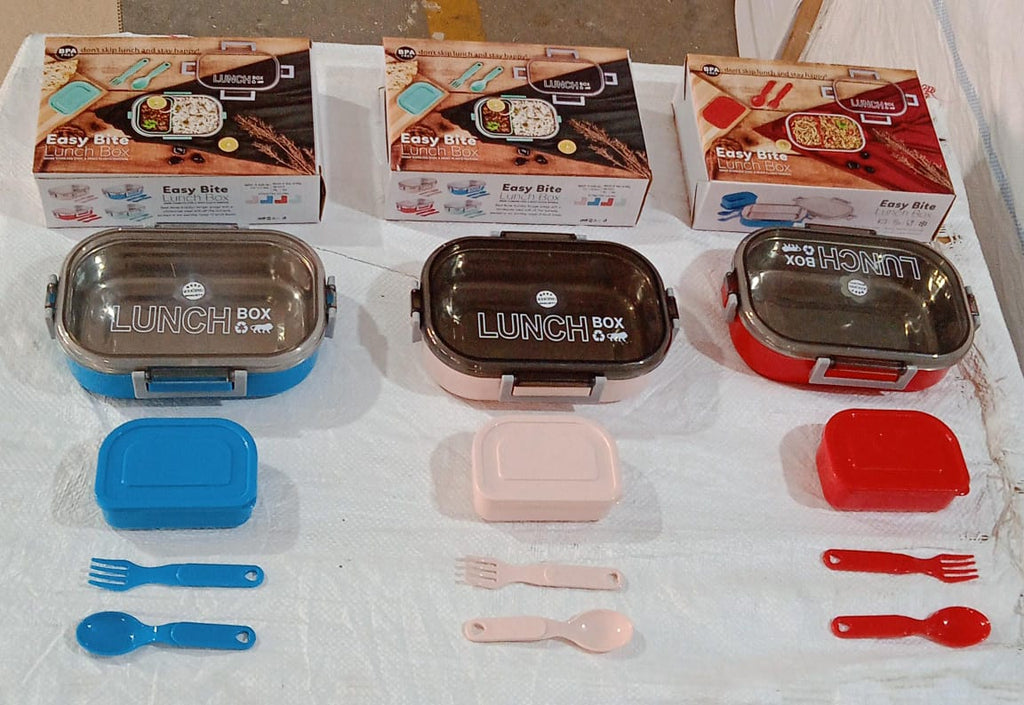 5770 Stainless Steel & Heavy Plastic Material Lunch Box for Kids Air Tight, BPA Free, Easy to Clean, Tiffin Box for School Office College, Snack Box with Spoon and Fork (1 Pc)